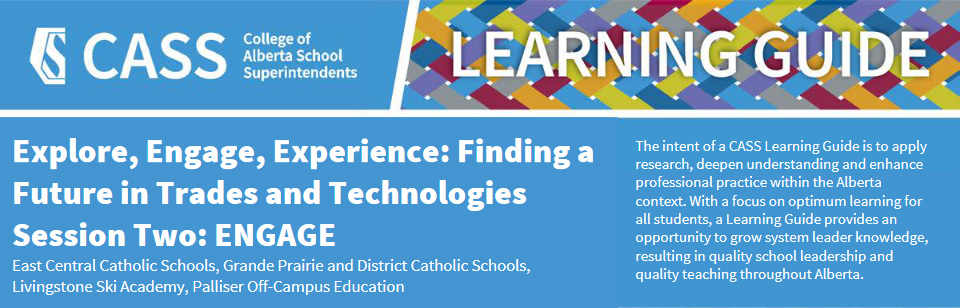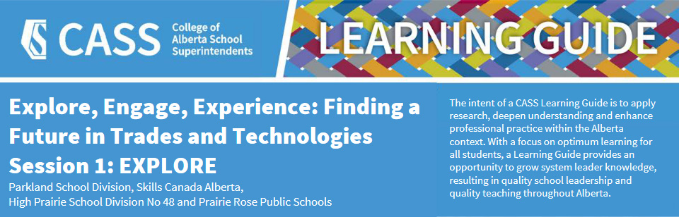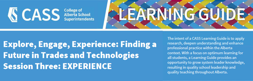 In 2022, CASS created the Alberta School Authority Skilled Trades and Technologies Survey, gathering responses from 47 school authorities to gain valuable insights, opportunities, and inspiration. The Explore, Engage, Experience: Finding a Future in Trades and Technologies Report captured the initiatives undertaken in Alberta schools. It aimed to identify successful practices that could be leveraged, adapted, or developed further to enhance student learning in skilled trades and technologies.