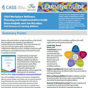 The CASS Wellness Environmental Scan and Needs Assessment report represents information gathered from school authority interviews about current practices and how CASS can design supports for school authority workplace wellness planning.