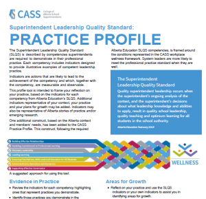 One additional construct, based on the Alberta context and members’ needs, has been added to the CASS Practice Profile. This construct, following the required Alberta Education SLQS competencies, is framed around the conditions represented in the CASS Workplace Wellness Framework. System leaders are more likely to meet the professional practice standard when they are well.