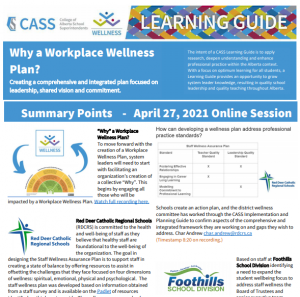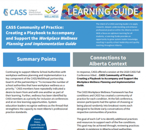 System leaders are addressing school authority needs by exploring and applying workplace wellness strategies. Continuing to support Alberta school authorities with workplace wellness planning and implementation, Directors of Leadership – Wellness, Brian Andjelic and Jim McLellan, launched a Community of Practice (CofP). Over 20 CASS members are working together with the intent of creating a playbook, featuring additional practices and resources to support each of the five wellness conditions outlined in CASS’ Workplace Wellness Planning and Implementation Guide.